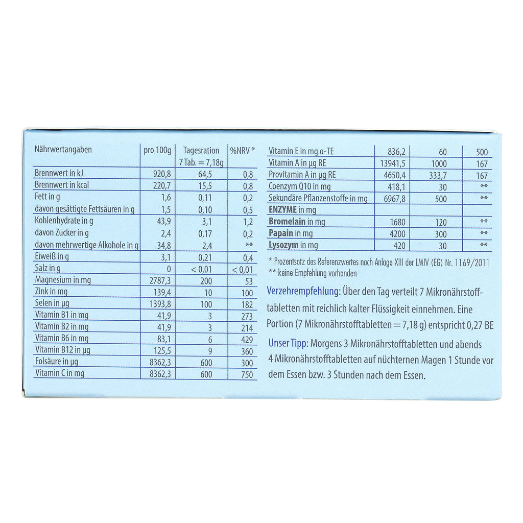 - * Magensaftgeschützte Mikronährstofftabletten (Teilung an der Bruchkerbe möglich)