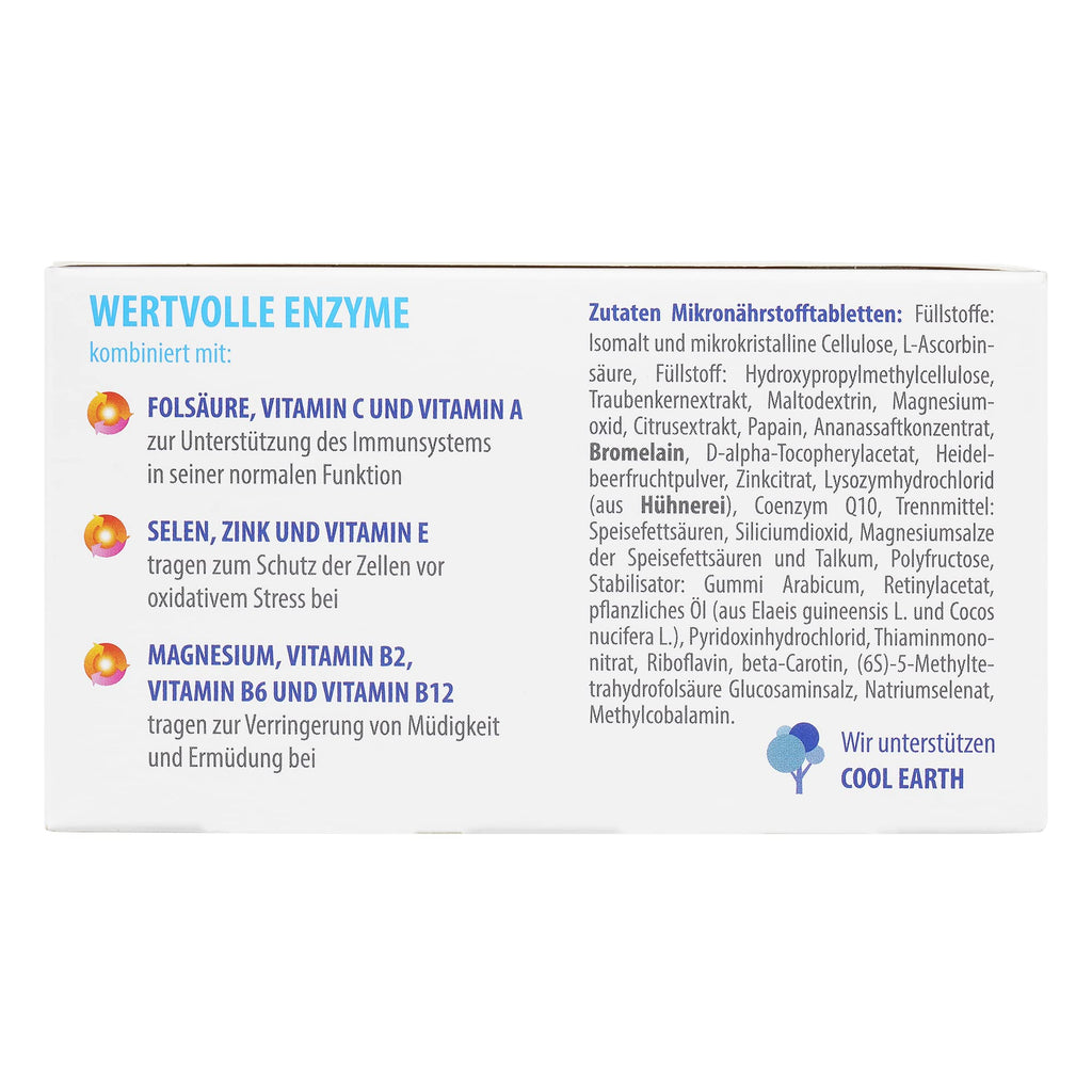 - * Erste ernährungsmedizinisch entwickelte Kombination aus hochdosierten Enzymen, Vitaminen, Vitalstoffen, Q 10 und Bioflavonoiden.