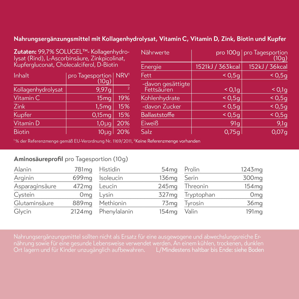 - REINSTES APOTHEKEN KOLLAGEN: Zertifizierte Premium-Peptide aus natürlichen, nährstoffreichen Rohstoffen höchster Güte. Ein streng kontrolliertes Verfahren stellt Reinheit und Qualität sicher. Vom pharmazeutischen Hersteller.