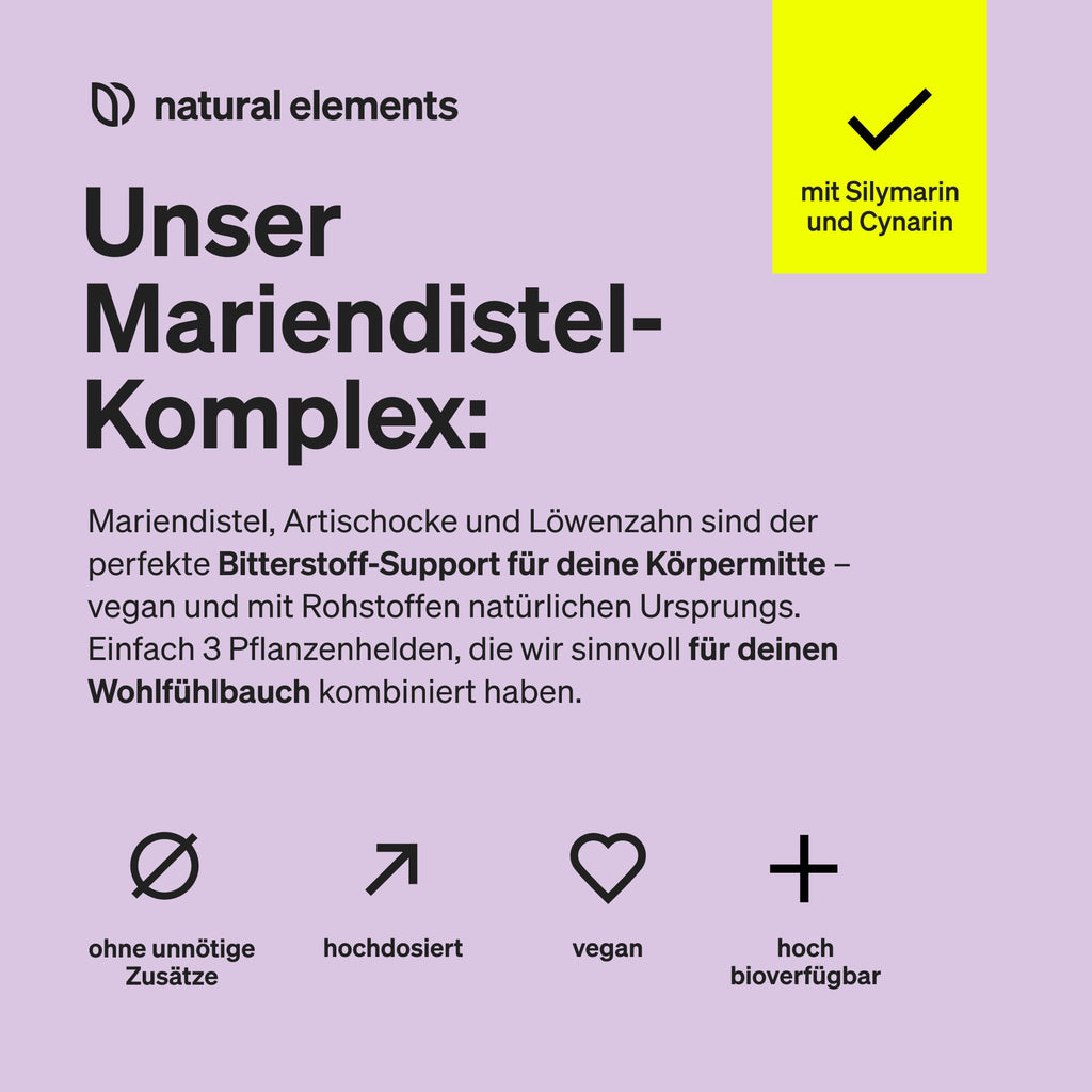natural elements Mariendistel Artischocke Löwenzahn Komplex - 120 Kapseln - Hochdosiert mit 80% Silymarin - Ohne Magnesiumstearat, vegan und produziert in Deutschland