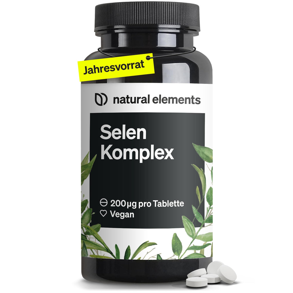 natural elements Selen Komplex – 365 Tabletten mit je 200µg – Komplex aus Natriumselenit und Selenmethionin – vegan, hochdosiert, ohne unnötige Zusätze – in Deutschland produziert & laborgeprüft