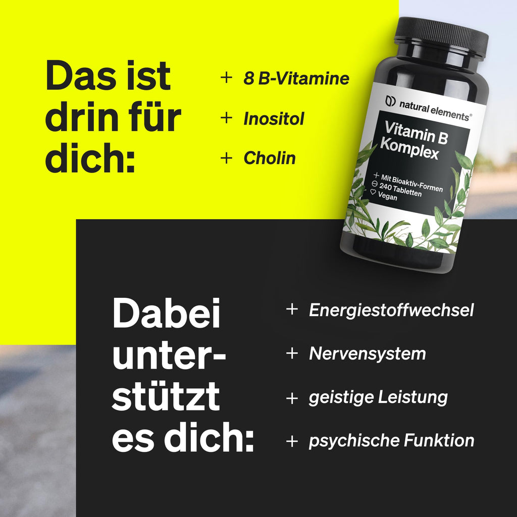 - 🙌🏼 ELEMENTAR EFFEKTIV | *Riboflavin, Thiamin und Vitamin B12 tragen zum normalen Energiestoffwechsel bei. Niacin trägt zur normalen Funktion des Nervensystems bei. Folat und Vitamin B6 tragen zur Verringerung von Müdigkeit und Ermüdung bei. Pantothensäure trägt zur normalen geistigen Leistung bei. Biotin trägt zur normalen psychischen Funktion bei.