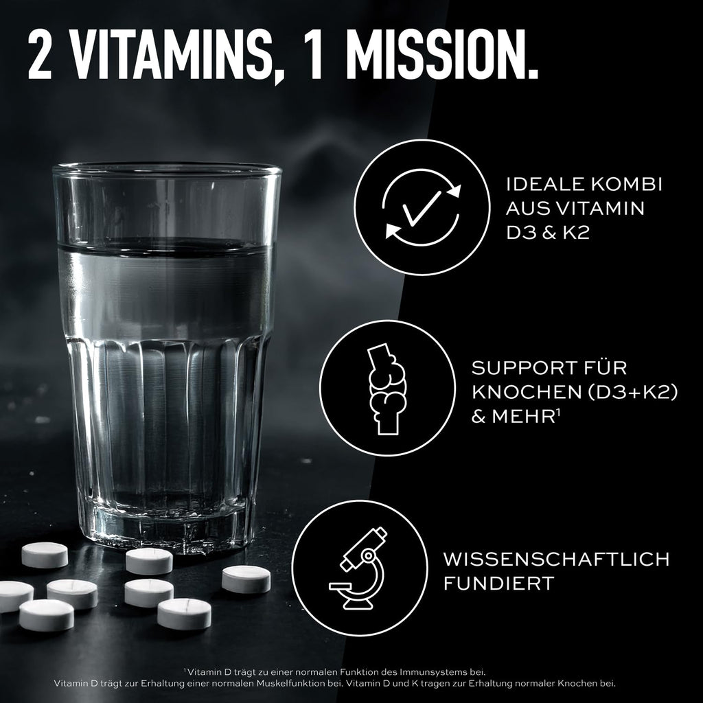 - 2 VITAMINS, 1 MISSION: Vitamin D3 unterstützt dein Immunsystem und deine Muskeln. Zusätzlich unterstützen Vitamin D3 und Vitamin K2 deine Knochen – alles, was du für deinen Alltag und dein Training brauchst¹