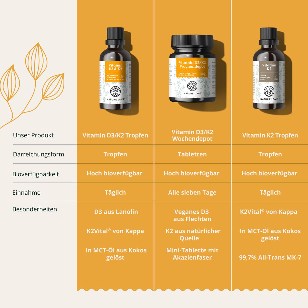 - 🧭 KOMMT SCHNELL AN: Neben dem K2VITAL MK-7 mit einem All-Trans-Gehalt von über 99,7% setzen wir auf ein stabiles Vitamin D3 aus Lanolin. Ansonsten enthalten unsere vegetarischen Tropfen nur MCT-Öl aus Kokos für eine schnelle Aufnahme im Körper.